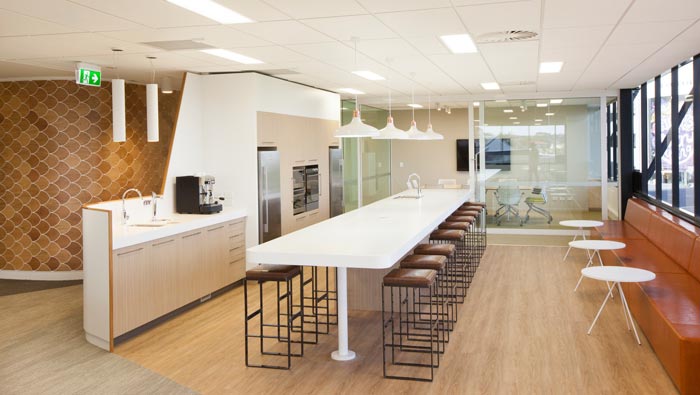 茶水間的設計:?在茶水間的設計上,設計師一直追求的就是空間之間的相互結合,故此茶水間的位置十分重要,設計師將其安置在空間的一側靠近墻壁的區(qū)域,以此釋放更多的空間做為休息區(qū)之用,此處的休息區(qū)呈長方形分布,讓員工可以在這里休息、交流、玩耍。