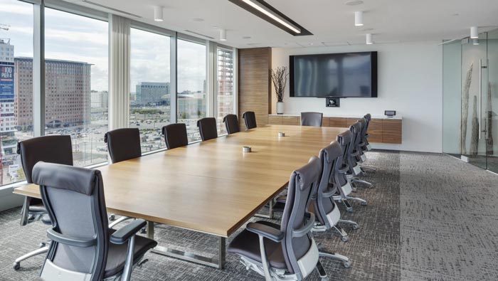 會議室的設計:通過以上的設計介紹,可以知道會議室位于接待空間的內側,且是一個獨立的空間,會議空間的設計以簡潔、明亮為主,這樣設計的目的,就是希望將光更好的加以闡述,光日復一日、從不間斷,這也是設計師希望通過設計傳達的信息,希望企業可以長盛不衰。