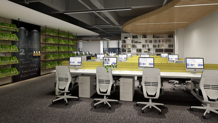 網絡辦公室大會議室設計:設計師在設計的時候,采用從內向外擴張的方式對空間進行設計,以中線向外部空間進行拓展,這樣的設計可以將空間進行合理的劃分與運用。