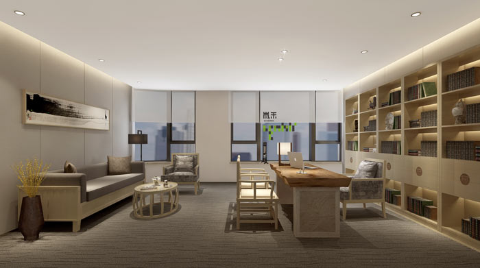 總經理辦公室設計:設計師在設計的時候將其安置在一個獨立的空間之中,窗戶以雙玻來隔斷外界的空間,讓總經理在這樣的空間中可以安心工作,不斷的提升自己、提升自己的心境。