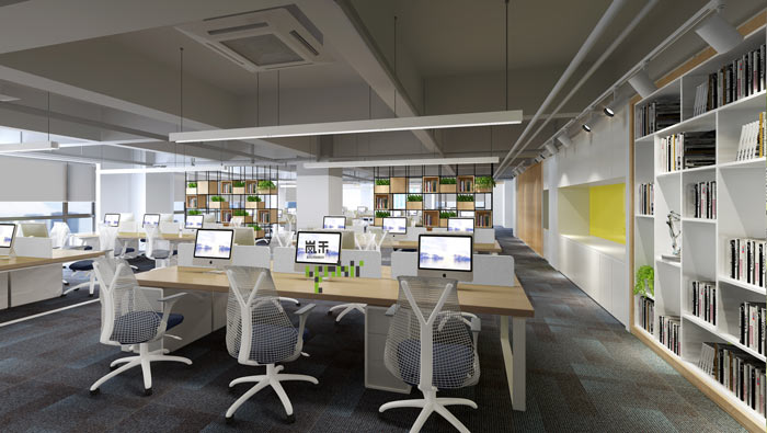 本次為杭州科技公司辦公室裝修設計效果圖,辦公室設計面積1058平方,設計師以穩重、活潑、通透、明亮為設計理念,希望打造一個人性化的辦公空間設計。