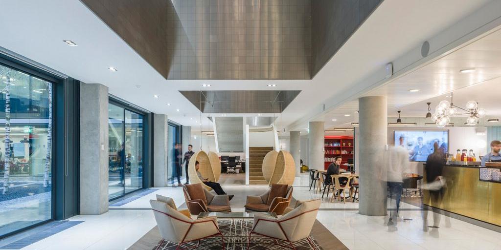 接待區的目的是要反映一個更開放和合作的工作空間,而不是封閉的歡迎更傳統的辦公室,一個中央酒吧和咖啡廳區占主導的入口空間。跳躍式工作室擺脫了該機構更多的細胞化和分區化的感覺,設計了一個非正式、時尚、實用的開放式規劃空間。