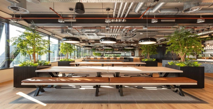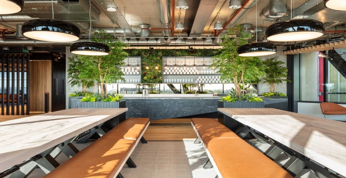 整體的設計就是將生活與工作相容,為員工提供更好的便利,一個充滿活力的辦公室空間增添了波普藝術作品中的一些自然元素作為裝飾,搭配家具的使用,柔和原始建筑的粗糙感,整個空間設計的非常有活力,正是對公司理念:“更好的工作、更好的生活”相呼應。