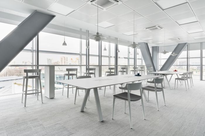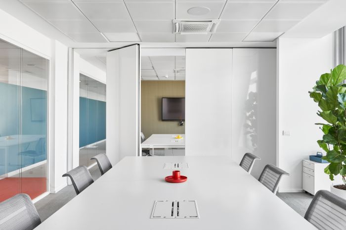 設(shè)計(jì)師在新的辦公室中劃分了包括用于非正式會(huì)議的工 作區(qū)、配備視頻會(huì)議的會(huì)議室。獨(dú)立會(huì)議室、項(xiàng)目室、圖書館和專門用于一對(duì)一會(huì)議和重點(diǎn)活動(dòng)的空間。