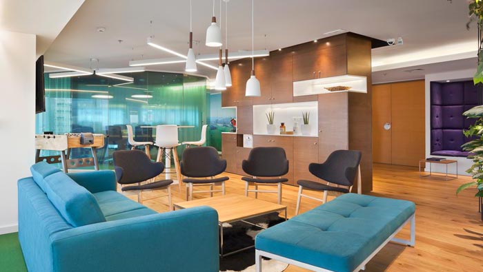 辦公區(qū)域的設計:設計師在設計的時候,采用不規(guī)則的辦公布局,在設計師看來這樣的設計可以各取所長、各補所短,在開放空間布局的同時,為每一個員工打造一個屬于自己的私人空間,不規(guī)則所打造的辦公空間,讓空間充滿了活力。