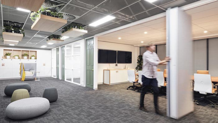 會(huì)議室的設(shè)計(jì):推拉門(mén)是此處設(shè)計(jì)的亮點(diǎn),當(dāng)門(mén)合起來(lái)之后一個(gè)封閉的會(huì)議空間展現(xiàn)在大家的面前,以此保證會(huì)議的順利開(kāi)展,當(dāng)門(mén)開(kāi)起來(lái)之后,內(nèi)外空間結(jié)合在一起,為會(huì)議室增加了一絲活力,在這樣的空間下交流,更有利于問(wèn)題的解決。