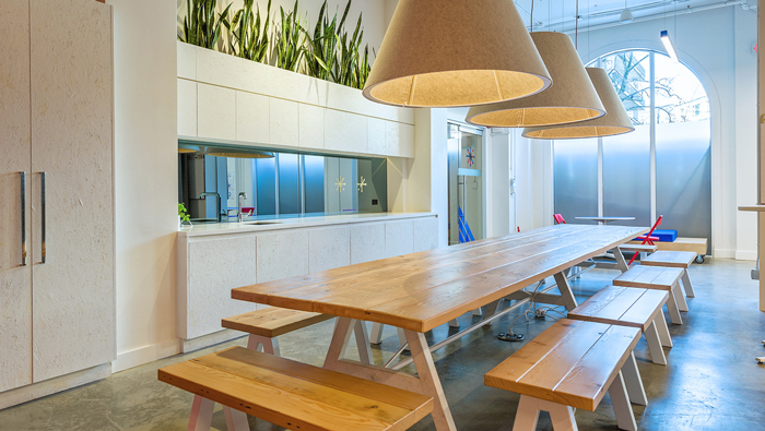 茶水間交流區(qū)的設(shè)計(jì):此次給員工營(yíng)造一個(gè)良好的交流區(qū)域,落地窗的設(shè)計(jì)設(shè)計(jì)師采用半透明半磨砂的方式,目的就是即希望空間可以保持明亮,同時(shí)也不會(huì)被強(qiáng)光所影響,設(shè)計(jì)師重點(diǎn)在于強(qiáng)調(diào)環(huán)境的構(gòu)成,其原動(dòng)力就是希望給員工一個(gè)優(yōu)質(zhì)的辦公環(huán)境。