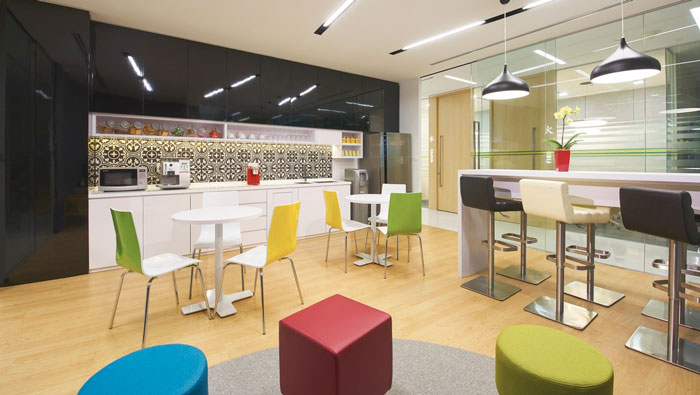 茶水間的設計:對于茶水間設計師向來是將其與休息區域相結合,在此處休息的感覺會更濃,而且此處也是一個獨立的空間,可以阻擋辦公壓力的進入,設計師希望給員工一個無壓力的場所,哪怕只是暫時也好,這也能讓員工好好的休息一下,為接下來的工作做準備,因為休息是更好的開始。