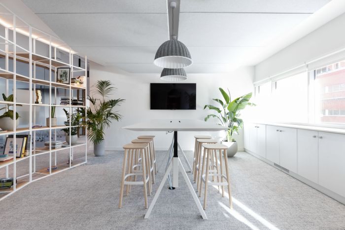 這些區(qū)域有相鄰的休息室空間、電話亭和非正式會議空間,可以滿足員工的多種需求,增加整個空間的利用率。工作區(qū)擁有大量的自然光和植物,提供了寧靜的氛圍。