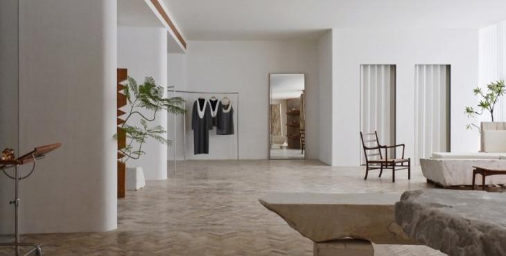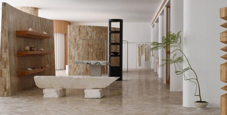 在材料上,鑲嵌在地面的來自海洋的貝類、直接從石場拉來的石方、北美松木清新的香氣,呼應(yīng)著這個塑造“自然的形狀”的服裝品牌的質(zhì)地。這些設(shè)置有利于有效率的工作和放松下來兩種狀態(tài)并存。我們希望它既能為工作提供便利性,但當(dāng)你放松下來,這個辦公室又是一個令人感到舒服的地方。