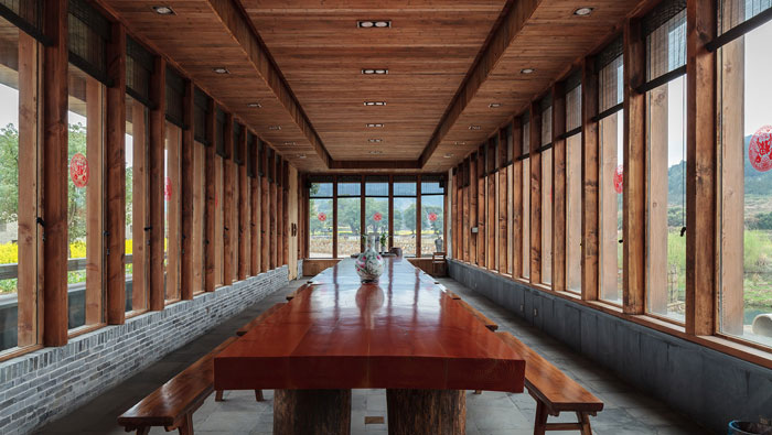 廠房走廊裝修設計:在這里雨水充足,在下雨時節可以坐在走廊上,看看蒙蒙細雨、看看大自然的變化,也是一種心靈的享受,設計師在不破壞自然的前提下,打造優質的生活環境。