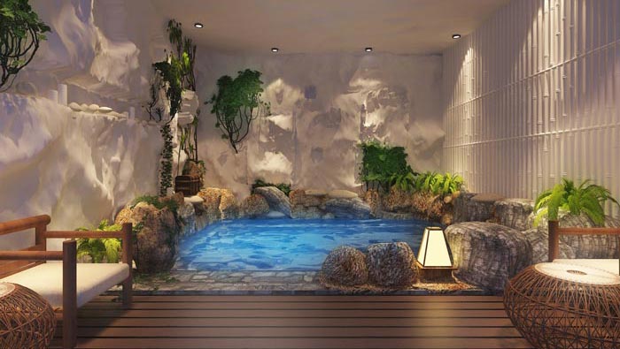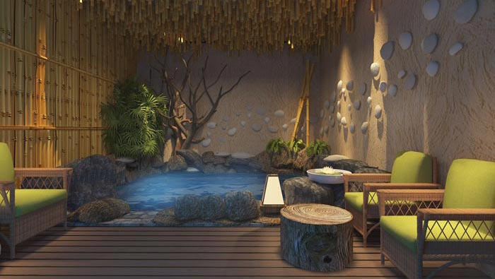溫泉的設計:此處描繪的是一戶人家的生活,在此處我們仿佛回到了古代,在這里沒有紛爭、沒有壓力、沒有污染,有的只是與世隔絕的安寧,這樣的安寧在現在的都市中是絕對感覺不到的,在這里顧客可以做到真正的放松身心,讓自己在這里的氛圍中,去治愈我們那千瘡百孔的內心。