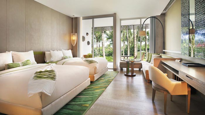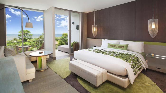 客房的設(shè)計(jì):在這里我們感受到的是度假村美麗的景色,在這里我們離自然是那么的近,設(shè)計(jì)師在設(shè)計(jì)中也充分考慮到室外景色的引入,在設(shè)計(jì)師看來(lái)客房與戶外景色相互融合,所達(dá)到的效果絕不是簡(jiǎn)單的1+1,而是將酒店進(jìn)行了一次全新的深化,讓酒店進(jìn)行一個(gè)全新的升級(jí)。