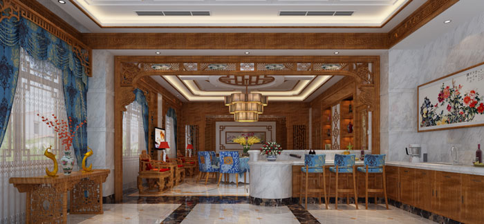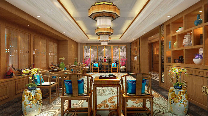 設計理念:此間會所案例主要是以名貴木材金絲楠來打造的定制會所。