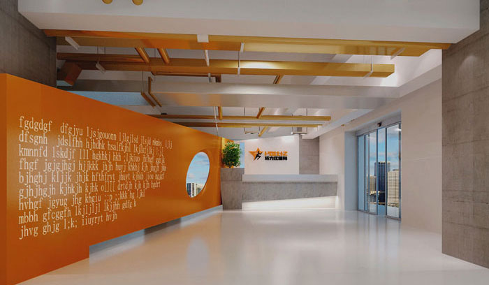 形象墻的設計,設計師采用了橘黃色,這樣會更加醒目,讓形象墻的功能作用可以得到最大化開發和利用。