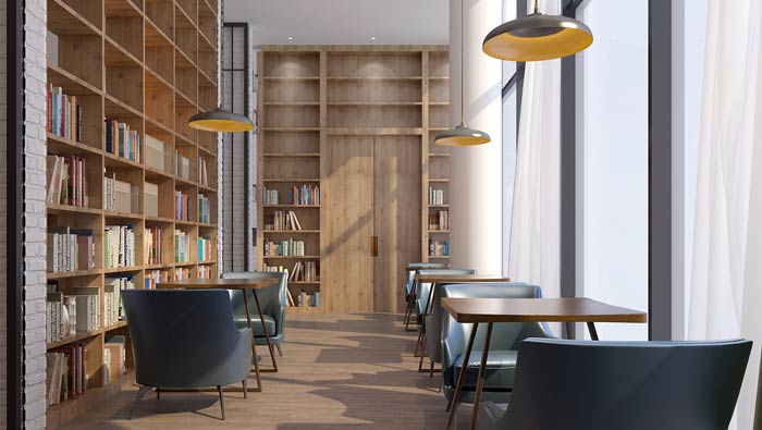 咖啡廳過(guò)道裝修設(shè)計(jì):過(guò)道在這里不僅起到連接的作用,同時(shí)設(shè)計(jì)師也賦予了其接待、休息的屬性,桌椅擺放在過(guò)道的外緣,以此滿足客戶在空間中的休息與閱讀。