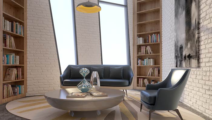 咖啡廳閱讀室裝修設(shè)計(jì):兩個(gè)半圓圍繞而成的閱讀區(qū)域,兩個(gè)半圓以圖書(shū)架的方式出現(xiàn),既起到阻隔空間的作用,同時(shí)也起到擺放書(shū)籍的作用,客戶在這里可以享受到暫時(shí)的寧?kù)o。