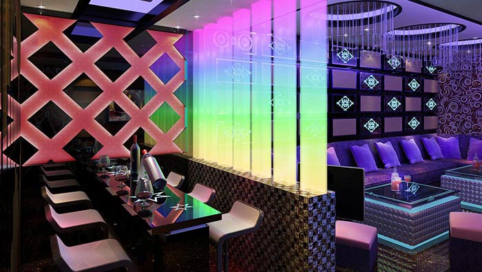 暖冷色無疑是夜場專用色調,給人憂郁感,神秘感,使人放松。通過燈光色彩凝造的氣氛而達到一種營利的干預手段。