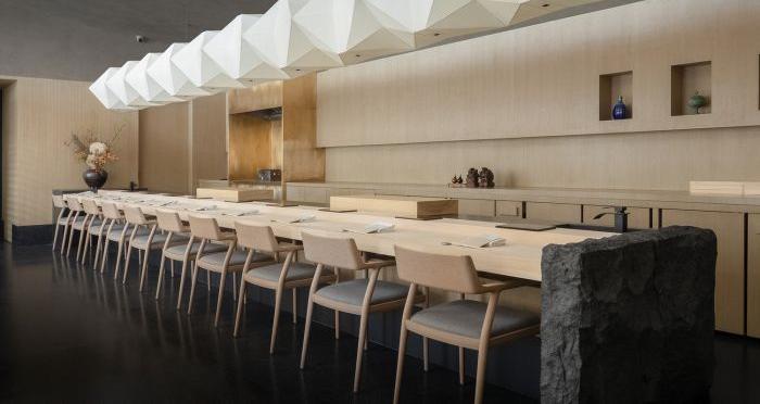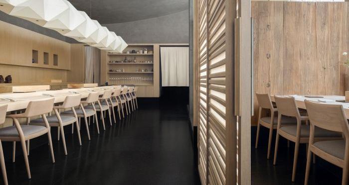 設計師將味覺上的奇妙感受用空間的方式敘述,利用原生材料和光線的結合,打造出淳樸的物性和真摯的情感。空間氛圍以質而實綺、癯而實腴的風格為主,靈感來源于日本的傳統藝術和自然景觀。