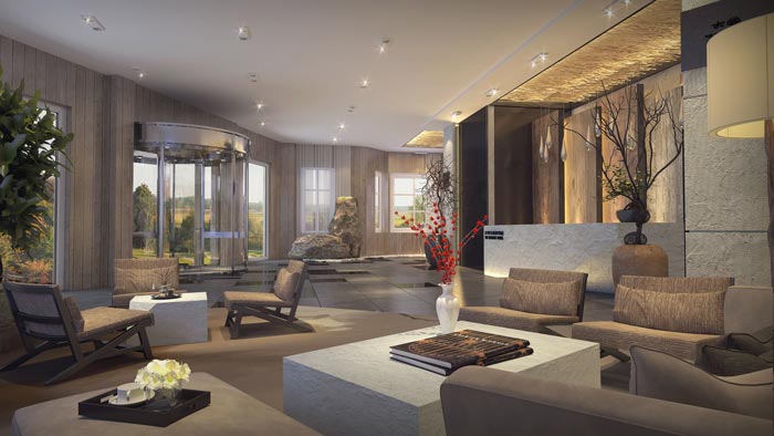 前臺的設(shè)計:對于商務(wù)人士來說,有時候休息都是一種奢求,每日忙碌的工作讓我們會有一種身心疲憊之感,故此設(shè)計師在前臺設(shè)計中,加入了自然的元素,讓人在此次感受不到工作的壓力,整個環(huán)境都十分愜意,讓客戶從忙碌的生活中脫離出來。