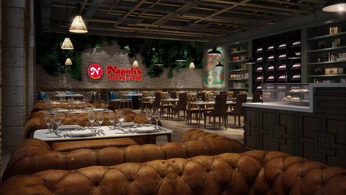 披薩西餐廳餐區(qū)裝修設(shè)計(jì):餐廳的內(nèi)部空間采用純西式的設(shè)計(jì),目的就是希望給客戶換一個(gè)場(chǎng)景,讓客戶可以見證不同的餐區(qū)氛圍,讓客戶在這里享受到地地道道的披薩。