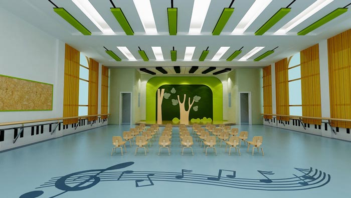 表演區(qū)域的設(shè)計(jì):這樣也就是最后一個(gè)音樂(lè)教室,但是這個(gè)教室與上兩個(gè)稍有不同,不同的就是屬性的改變,在此次設(shè)計(jì)師希望在滿足音樂(lè)教室的同時(shí),也可以滿足表演的需求,設(shè)計(jì)師希望每一個(gè)孩子都是一個(gè)表演家,在臺(tái)上可以盡情的表演,培養(yǎng)每一個(gè)孩子表演、演講的能力。