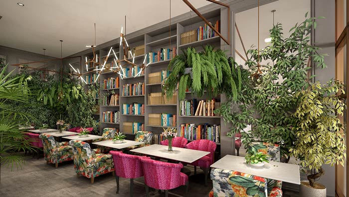 主題餐廳就餐區(qū)設(shè)計:此處位于空間的內(nèi)部區(qū)域,外部以熱帶雨林風格為主,內(nèi)部為幽靜、清雅的風格為主,一靜一動之間讓整個空間更有魅力,滿足不同需求的客戶。