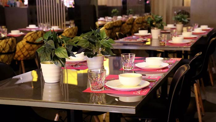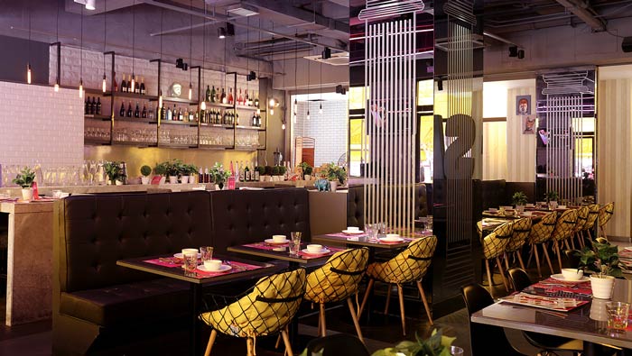 主題餐廳門頭設(shè)計:全透明的玻璃隔斷,將室內(nèi)室外完全連在一起,讓過路人可以清晰看到室內(nèi)的景色,這不僅可以提升餐廳的知名度,同時也可以增加空間的視覺效果。