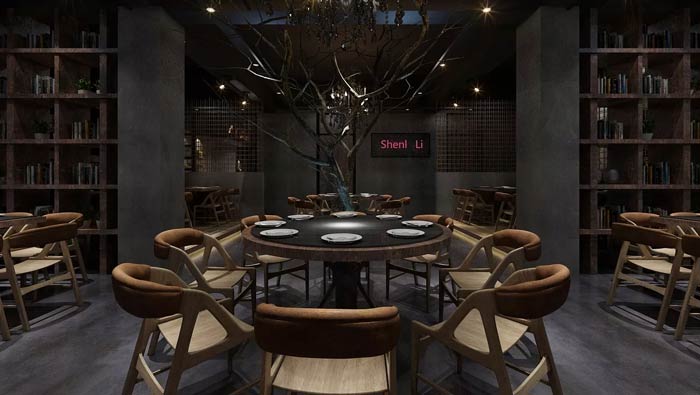 特色主題餐廳裝飾設(shè)計:中式元素強(qiáng)調(diào)的就是人與自然、人與物之間的關(guān)系,這里將這種關(guān)系進(jìn)行了很好的融合,讓設(shè)計與建筑、與環(huán)境、與自然很好的進(jìn)行融合。