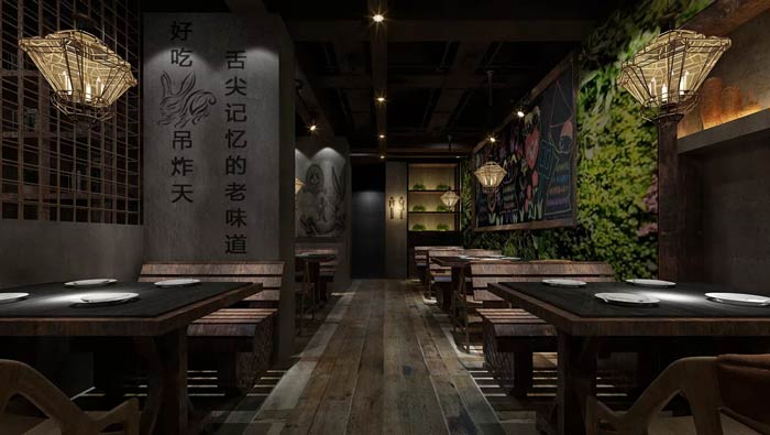 特色主題餐廳墻體設(shè)計:舌尖記憶的老味道,好吃吊炸天,兩種不同的說話方式,在這里得到很好的融合,既有回憶的美好,又有現(xiàn)在的美好,一切的一切完美融合。
