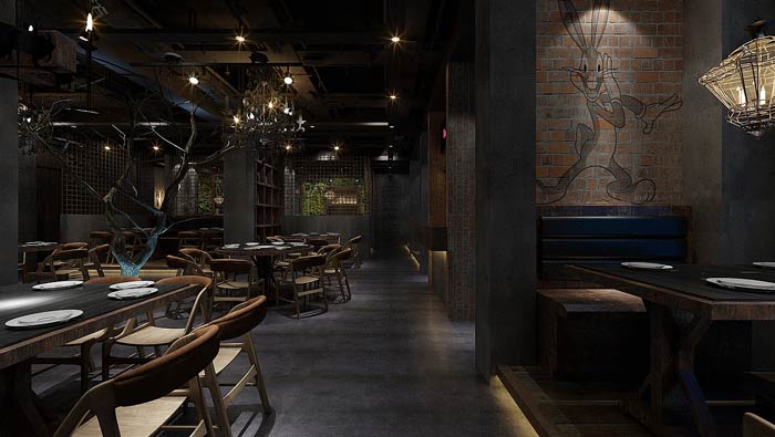 特色主題餐廳大廳設(shè)計:柔弱的燈光讓整個空間安靜了下來,這里沒有快速、沒有煩惱、沒有焦躁,有的只是一種消失已久的慢生活,在這里客戶的一切都慢了下來。