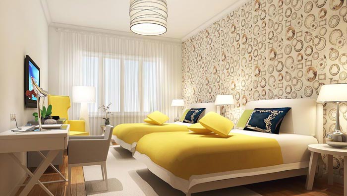 雙人間的設計:此處給人最溫柔的就是地面柔柔的地毯,在這里客戶可以赤足在屋中走動,讓大家感受到赤足而走的感受,設計師希望讓大家明白,自己有多少時間沒有好好的放縱一下了,自己有多少時間沒有為自己好好活著了,人生本身是美好的,設計師希望我們去正對他。