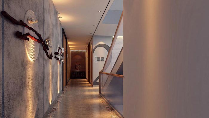 過道的設計:對于過道設計師一直都有一個設想,難道過道就只能是一成不變,難道不能有一點點改變嗎?這次設計師在此處做了一次嘗試,經過無數次的設計結果是喜人的,設計師在其中加入了文化的氣息、與燈光的元素,目的就是讓客戶在酒店處處感受到文化的氣息,讓每一次都充滿新意。