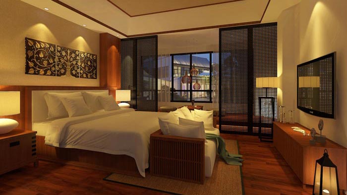 雙人間的設計:在雙人間的設計上面,設計師認為最重要的就是完善各自之間的距離,因為兩個人與一個人總歸是有很大的不同,在這里床的位置十分重要,因為既不能突出那個,也不能忽略哪一個,所以空間的平衡非常重要,這就要求設計師在設計中,需要對格局進行不斷的調整與嘗試,目的就是希望達到一種動態的平衡。