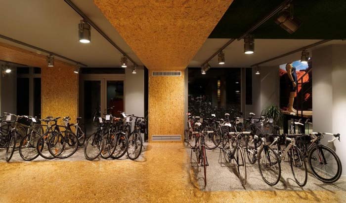 拋開這個第一印象,設計師亦花了不少心思,車店的地面面積多達400平方米,被分成4個區域,每個區域展示不同的自行車服裝和配件,城市自行車、山地自行車、競賽自行車和兒童自行車各司其職;而在150平方米的閣樓處,盡是服裝和鞋類。