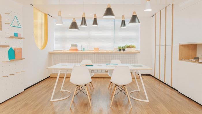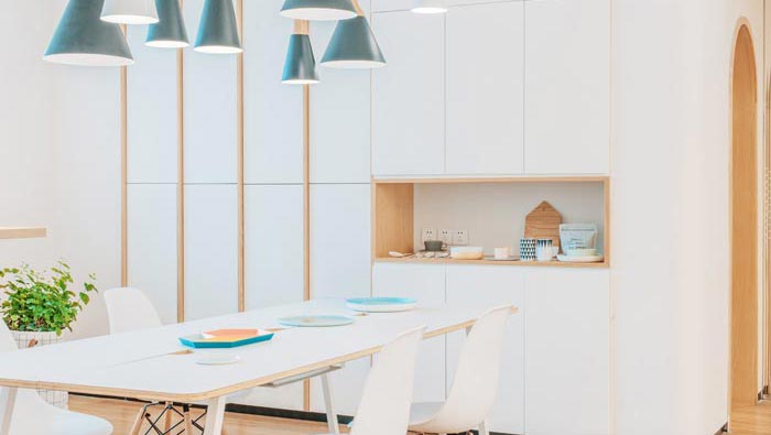 茶水間的設(shè)計(jì):看到此處不得不感嘆設(shè)計(jì)師的創(chuàng)意,設(shè)計(jì)師在墻壁中掏出了一個(gè)壁櫥,以此滿足茶水的需求,在高度的設(shè)置上也有所控制,剛好控制在孩子夠不到的地方,即滿足了需求又避免了孩子的直接接觸,小空間配上一個(gè)如此迷你的茶水壁櫥,感覺(jué)真是卡哇伊。