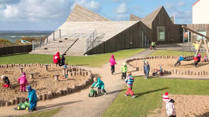 教室采光的設計:室內(nèi)與室外海洋景觀緊密聯(lián)系,全年都可以提供理想的日光照明條件,讓孩子們在這里無憂無慮的成長,溫暖的陽光見證了孩子的成長,也照開了孩子的心,讓孩子們從小學會積極向上的生活,為孩子的茁壯成長打下堅實的基礎(chǔ)。